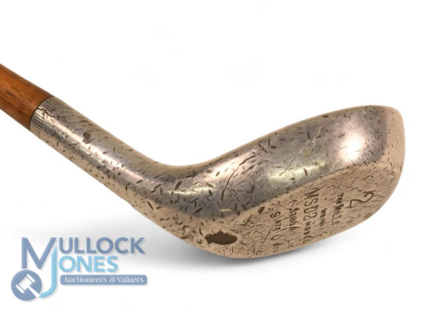 Mills MSD2 model alloy mid iron with slight neck crack showing a maker's mark below the full length original grip