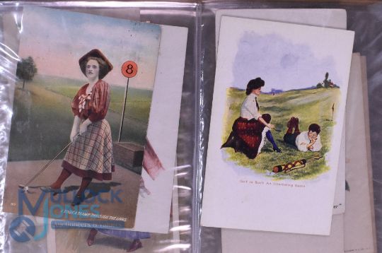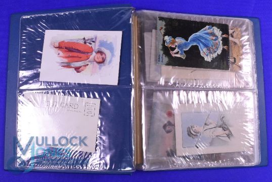 Selection of Lady Golfers Post Cards: 32 Cards featuring various women with their golf attire, mostly in colour, American Canadian post cards, comes in its own album for display
