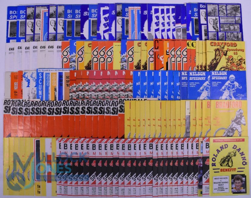 1960-1990s Speedway Programmes. Featuring Rochdale 1970 x1 1971 x16, Boston x25, Castleford 1979 x4, 1980 x3, Crayford x30, Nelson 1967 x1, 1968 x8, 1969 x7, 1970 x3, Scunthorpe 1975 x1, 1976 x1, 1978 x1,1979 x2,1981 x1,1982 x2,1983 x2, Belle Vue 1991 complete season, Bradford 1971 complete season (box)