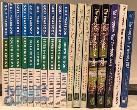 European Tour Golf Yearbooks: Collection to include Volvo yearbooks, 1994, 1992, 1993, 1994 x3, 1995 and 1996; and European tour books 1997, 1998, 1999, 2003 x2, 2005 x2 (box of 18)