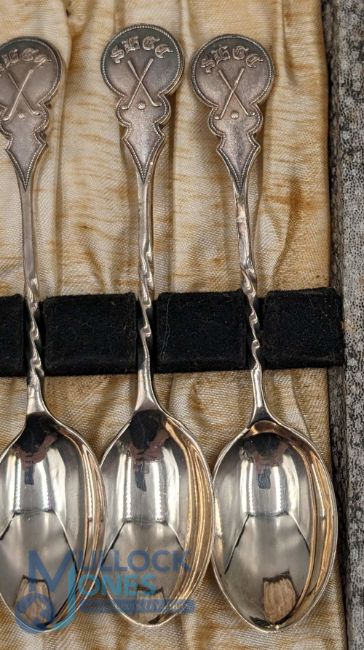 Set of 6 Silver hallmarked Golf Club Teaspoons, a fully hallmarked B'ham 1934 SHGC spoons in original box #91g