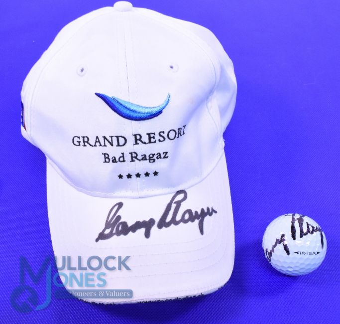 Gary Player (9x Major winner incl rare Career Grand Slam) Swiss Senior Open Golf Tournament signed European Tour Cap and Golf Ball including official Grand Resort Bad Ragaz embroidered tour cap signed Gary Player to the peak and to Callaway HX Tour golf ball