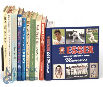 Selection of Cricket Books: Cricketers of Vanity Fair, caught in the Frame, Sketches at Lords, Essex CCC Memories, Cricket Cartoons, Rothmans History of Cricket, Back Page Cricket, Essex Cricketers, Ashes Fever, World Cricket (box)