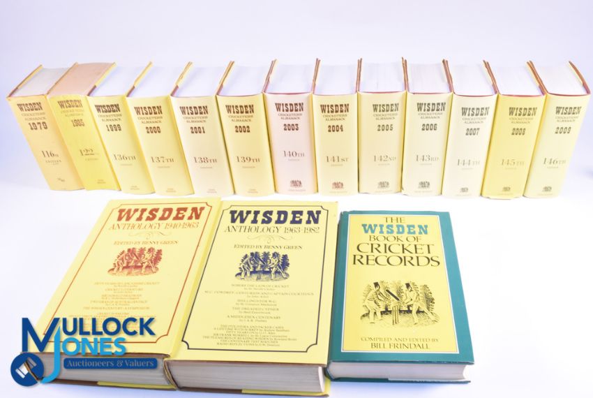Wisden Cricket Cricketers Almanack, years of 1979-1985, P/b, 1999-2009 a run all H/b with D/j plus Wisden Anthology 1950-1963 and 1963-1982 Wisden Book of Cricket Records (16)