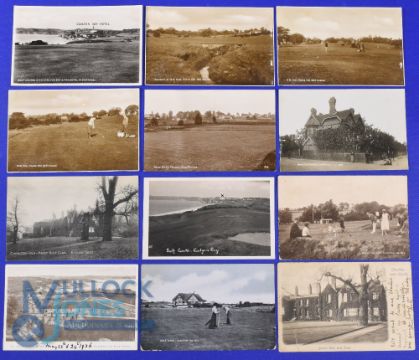 Interesting selection of various early English Golf Links b&w postcards (12) to include 2x Copthorne, 2x Clacton on Sea including Happy Valley pitch and putt, 2x Chorlton cum Hardy golf club including Barlow Hall clubhouse, St Austell Bay Hotel Gardens and Golf Links, 2x Golf Course/links-Carlyon Bay, and 3x Crews Hill Golf Course to include 9th tee, Approach to 14th Hole and 18th tee - 6x used dates include route 1903, 1901, 2x 1936, and 1952 - including Southwoods Exeter, H Potter P O Copthorne, S Hildesheimer & Co London, Kathleen Rundell Cornwall, WHS, and Wrench series et al