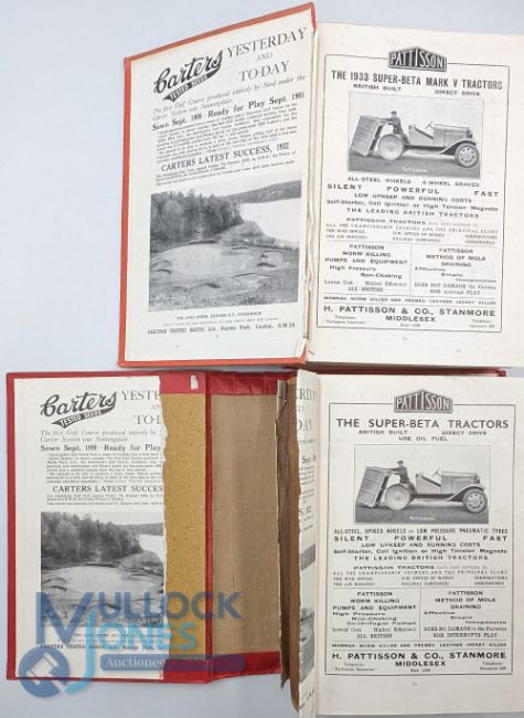 The Golfers Handbook & Year Book 1933 and 1934 - illustrated with photographs and advertisements, red cloth cover, the boards are weak at internal spine, the 1934 has a part loose front board with white lettering and decoration to cover and spine - The Golfer's Handbook, internally clean 1933-34, F-G (2)