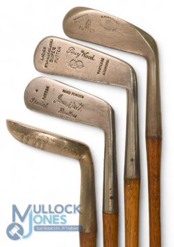 4x Assorted putters including a Brown Vardon metal mallet head with dropped toe stamped W Gibson, Kinghorn to the crown, Forgan and Son St Andrews crown model Nap putter, James Watt rustless straight blade and a Percy Wood ladies super putter - all with grips