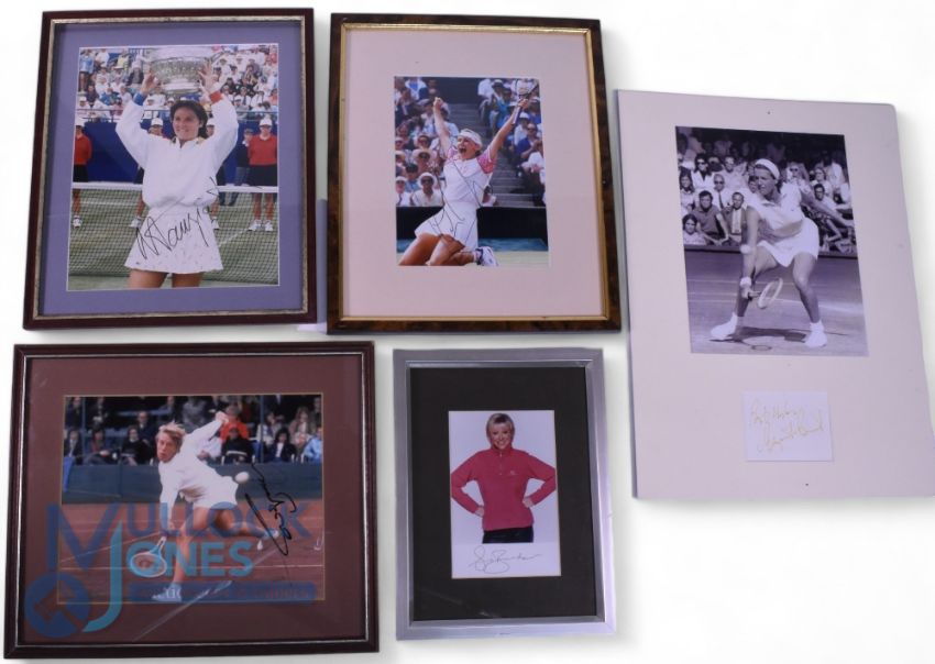 Tennis - 5 Women Players Autographed Photographs. To include Sue Barker, Natalie Tauziet, Jana Novota, Ann Jones, Margret Court 4 are f & g 1matted for framing (box)