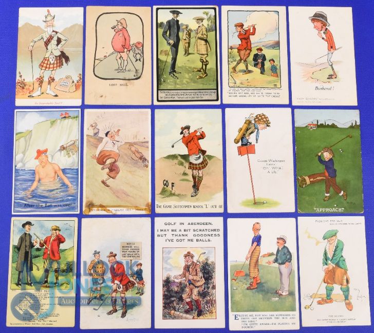 Interesting collection of amusing cartoon coloured golfing postcards from the early 20thc onwards (15) - many with annotations to include Valentine series, National Series, The Silverline series, Milton Series, Humoresqe, et al - 7 used dates ranging from 1909, 1920s, 1930s and 1940s