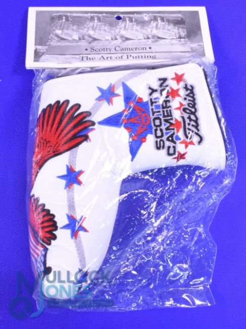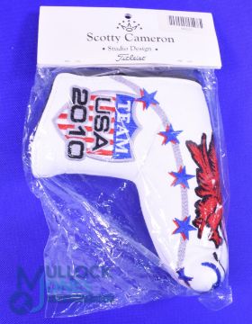 Scarce 2010 Scotty Cameron "Team USA (Ryder Cup)" leather embroidered putter head cover still in the original packaging - played for the 1st time in Wales at Celtic Manor Golf Resort won by the Europeans - embroidered with the United States Eagle emblem and Stars and Stripes