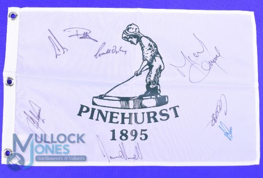 Pinehurst (US Open Golf Championship Venue) signed pin flag - signed by Michael Campbell winner 2005 together with other US Major winners Ernie Els (Champion 1994 and 1997), Retief Goosen (Champion 2001) together with 6x other signatures to include Lee Westwood et al