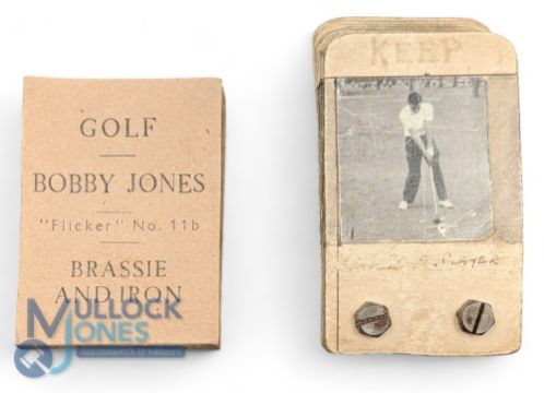 Bobby Jones Flicker Book titled Brassie and Iron, No.11b with a reproduction cover, having ink stains to inside, with a homemade 'keep your head still' flicker book