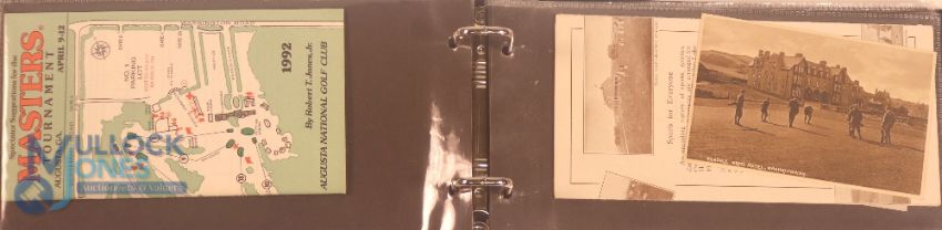 Golf related ephemera: to include Postcards, Augusta Masters Map 1992, Blackheath Golf Club Annual Dinner Menu 1925, Comet Golf Ball Die cut pop-up Advertising scorecard, Augusta guide in display folder