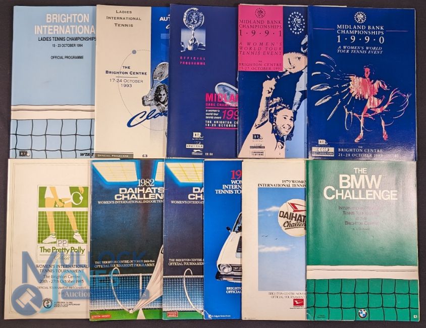 The Women's International Championships Tennis Programmes. Official programmes. Held at Brighton Centre, 1978 to 1982, 1985, 1990 to 1994 - results very neatly written in all programmes and in flat condition with no folds (11)