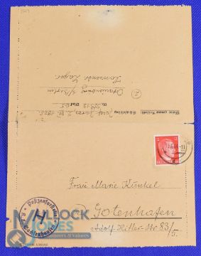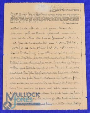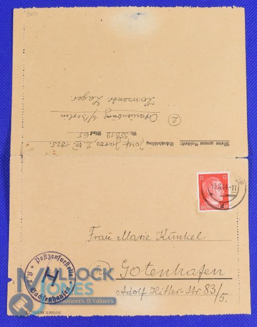 WWII - Sachsenhausen Concentration Camp Letter - date 4th June 1944 hand written, with official stamp, perforated edges and official text printed to top, with stamp and postal stamp