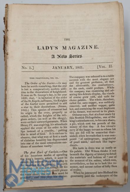 The Ladies Magazine 1821: Vol II New Series, complete January to December, with engravings. Monthly issues, disbound