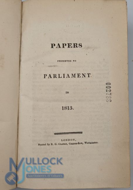 England v America - War of 1812-15: A collection of papers presented to Parliament between 1811-13, printed and published in book form in February 1813. Concerning the events that led to America declaring war on England and correspondence between English and American Ministers. London 1813, 8vo 830pp + xxipp. Index bound in half blue leather and cloth, worn