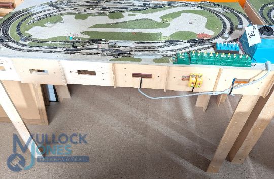 N Gauge Model Railway Layout - Mounted on base board with legs 120 x 60cm complete ready to go to include Building, Cars, Minitrix Trains, Transformer, Booklet (Please note it has not been tested - Not Suitable for posting (collection only)