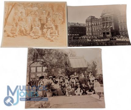 Boer War: three original photographs, one showing the Pass Office Staff in Pretoria 1900, the second showing the Thanksgiving Day celebrations for the end of the War in 1902 and the third showing a group of British colonials