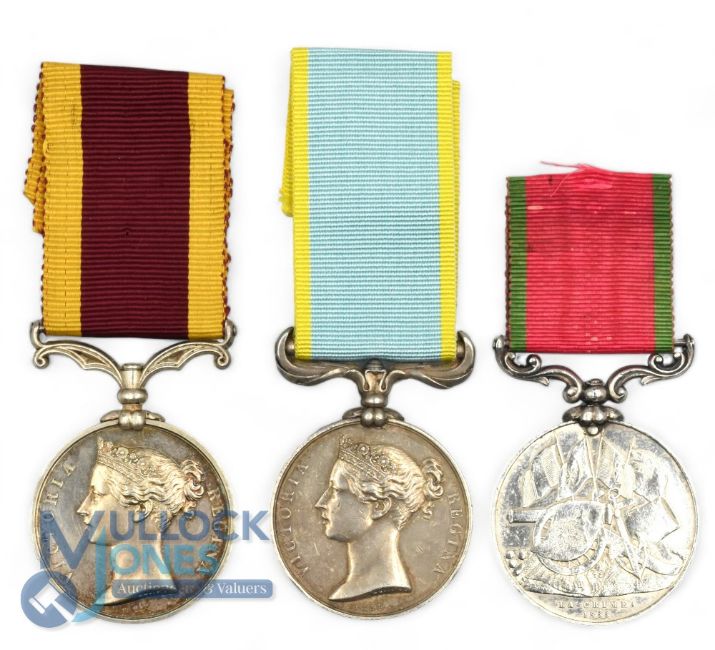 Victorian Royal Navy Medal Group. To John Bowden 2nd China HMS Tribune, Crimea / Turkish Crimea unnamed (comes with copy rolls for Crimea and China) paper say DD Discharged Dead so medals was issued to his Brother Rober Bowden