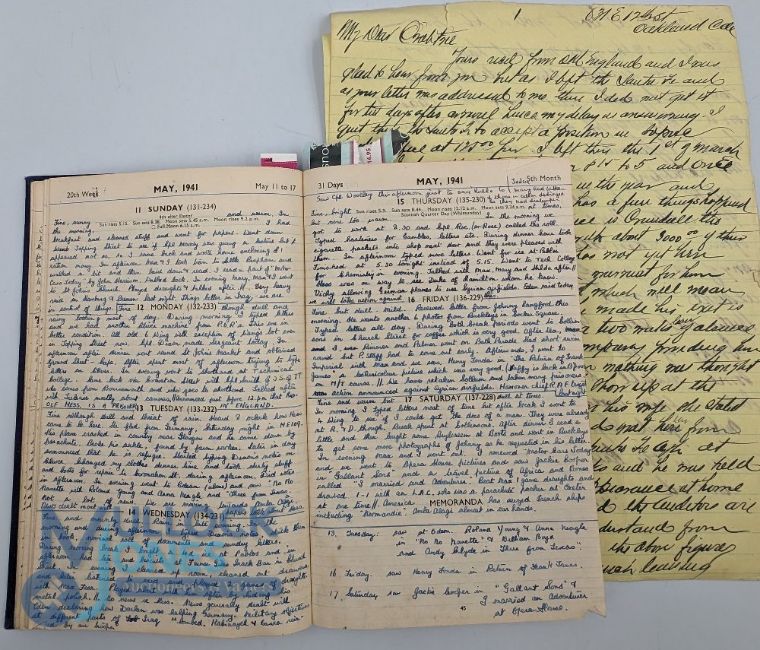 WWII - extensive diary for 1941 written by a military secretary, written in a small but very neat hand and thus providing a considerable amount of information about her daily life, working for the Army and commenting on the progress of the War in one of its darkest years. An extremely valuable piece of WWII documentation providing an extensive picture of what life was like for one individual at this time.