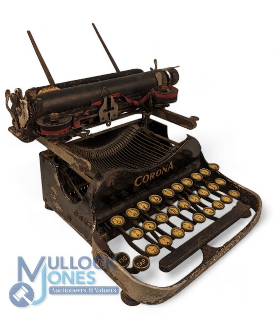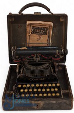 A Vintage Corona Typewriter c1910: flip out style typewriter in case, showing some signs of age