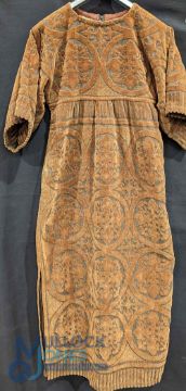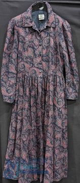 1970-1980 Vintage Laura Ashley Clothing: Dresses, Skirt, Blouses: good collection of Laura Ashley early designs including a red block colour cotton dress size 12, sleeveless pink floral dress size 10, pink block colour short sleeve dress size 10, wool and cotton sort sleeve paisley pattern dress, cheese cloth and lace blouse with a 1970s Hilton of London brown towelling maxi smock dress size 12-14, and a unbranded dress (7)