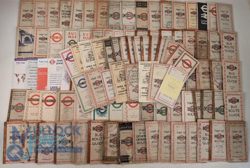 A Carton London General Transport Maps and Booklets: a good early selection from 1920 onwards, some have tape to edges, and a few reprints noted (#90)