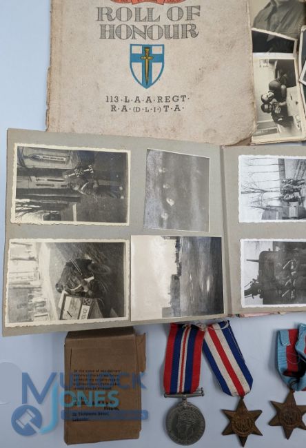 WW2 1939/45 F & G Star - War Medal Group. To Royal Electrical Mechanical Engineers comes with photograph album containing 72 photographs together with small number of loose photos and Roll of Honour book for 113 LAA Regt