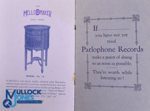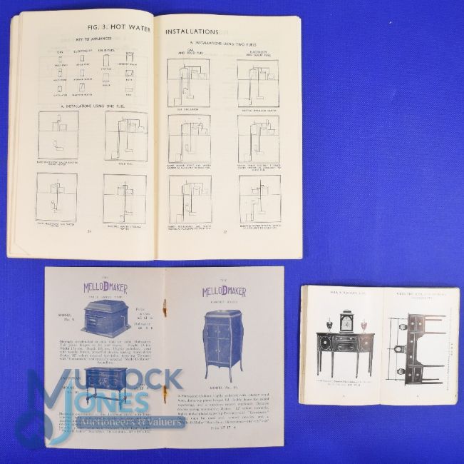 Sales Catalogues (4) Gill & Reigate, Quality Furniture 1890s-1900. An extensive 159 page illustrated furniture catalogue each item with details and prices. Printed on semi-gloss paper, in card cover, size 3.25" x 4.75" t/w Mello D Maker Gramophones 1924 Catalogue - An 8 page catalogue illustrating and 11 different table and floor standing Gramophones with details and prices, sold by W H Reynolds, 22 City Rd, London EC2. Printed on art paper in card cover with illustrated front cover, size folded 4.75" x 7.25", t/w Television Handbook 1953 - a 96 page handbook published by the Daily Mail with over 50 photographs of just the BBC television at that time, the personalities, David Dimbleby, Gilbert Harding etc. Studio's Notable Events etc. Also pictorial adverts for televisions of various manufacturers with details and prices. In pictorial card cover, size 4.75" x 7.25" and Housing Manual published for the Ministry of Works 1944. An extensive 104 page publishment with 24 pages of photographs, extensively detailing War Time Governments intending post war housing construction and the various types of buildings intended with various drawings and plans etc. In card cover, size 6" x 9" (in as new condition)