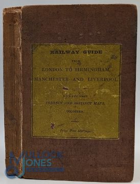 Railway Guide from London to Birmingham Manchester and Liverpool - published by George Jones c1839-40 - a very extensive 288 page publication and 23 Plate illustrations detailing all the stations and places of interest along the lines the industrial and establishments in those towns, in particular Birmingham Liverpool and Manchester, has two hand coloured fold out maps. With detailed distance tables. In original cloth board cover, size 3.75" x 5.75"
