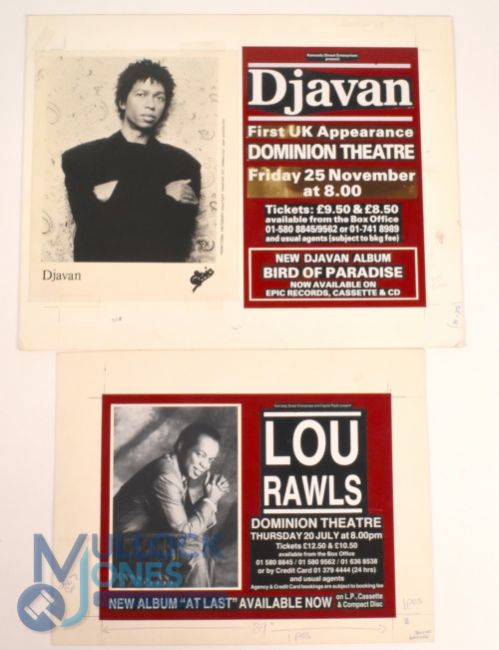 Original Artwork for Concert Advertising. Show featured are The Las Vegas Folies 77, Barry White and Natalie Cole, Lou Rawls, Djaavan, Bobby Davro, Freddie Starr, Max Bygrave's and Chita Rivera, Hans Andersen Tommy Steel at the London Palladium (qty)