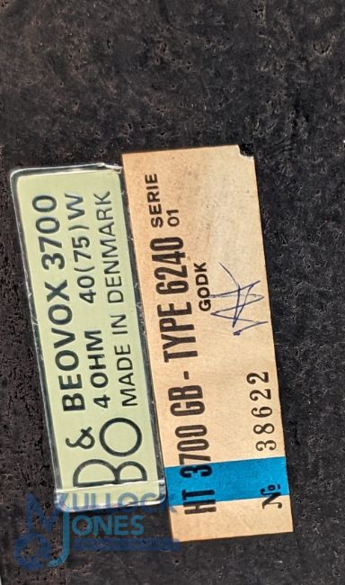 Pair of Bang & Olufsen 3700 Beovox Speakers (no stands) type 6240, one having slight damage to rear of wooden casing, both untested