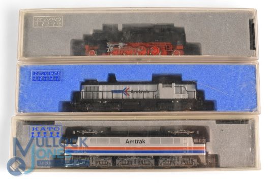 Kato N Gauge Diesel Locomotives. Amtrak 13002, Amtrak RS-3 17708 together with steam locomotive BR86 12702 all in original box, new old shop stock (3)