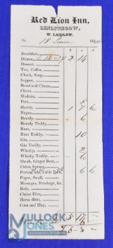 Linlithgow, West Lothian "Red Lion Inn" 15th June 1830 - Coaching Inn bill - for 18 dinners and rather a lot of drinks. Quite some celebration costing £6 in all. Black printing with manuscript annotations, size 3.25" x 8.25"