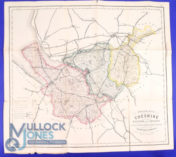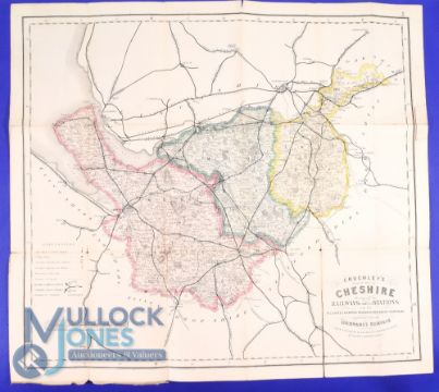 Cruchley's Railway and Station Map of Cheshire 1860s. Detailed map folding out to size 23" x 20.5"
