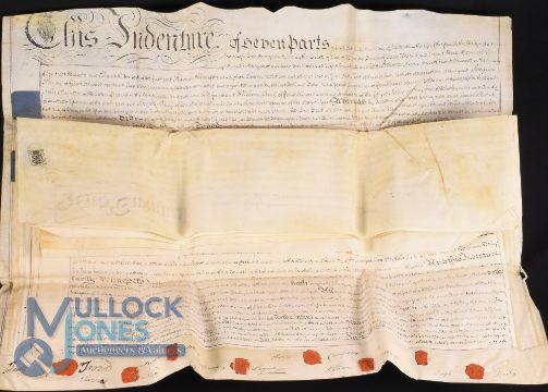 Somerset - Lease of an Inn: extensive indenture on nine sheets of parchment dated September 29th 1815 being the assignment of the lease of an inn called The Swan in Frome, Somerset, together with tenements and other properties. Signed and sealed by eight parties to the transaction. Together with a second indenture dated 1807 for the lease of an inn called The Duke of Cumberland, formerly known as The Catherine Wheel in Chippenham, Wilts. Both these inns appear to have long disappeared. The Duke of Cumberland was demolished in 1960, and the present documents provide important information on the history of inns in the west country
