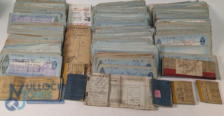 1920s-1930s Barclays Bank Limited Cheques, paying in slips, for Kings Norton Banks, a collection of 100s of paid business cheques, plus a collection of 1950 paying slips and cheque stubs for BS White Farm District Bank Limited, Bennetts Hill Birmingham (box of)