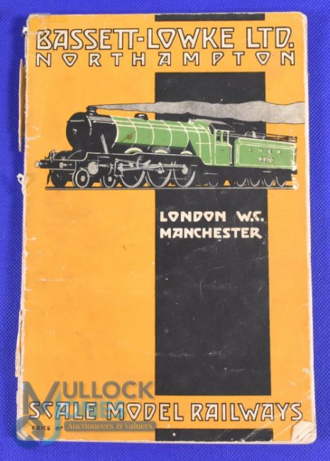 Bassett - Lowke Ltd Northampton. Scale Model Railways 1933 - 150 well illustrated page catalogue with extensive detailed specifications and prices of Live Steam Locomotives, of 9.5" for Garden Railways to smaller gauges for homes and ranging to electric and clockwork, Also well-constructed Coaches, Goods wagons, Station buildings, signals, track sections etc. Printed on semi-gloss paper in illustrated card cover, size 6" x 9"