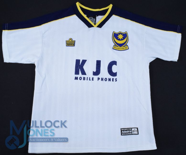Portsmouth FC Away Football Shirt 1998-1999, Size S, Admiral / KJC mobile phones, white, good condition with a small hole to sleeve and cut to collar label
