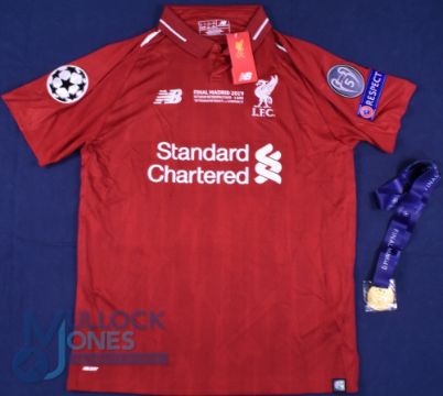 Liverpool FC home football shirt, 2019 Champions League Final v Tottenham, Size L, New Balance / Standard Charter, red with tags, includes a replica medal (G)