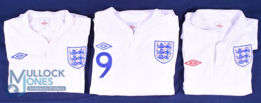 Three England Football Club Shirts - All Umbro and Size 44, White (G)