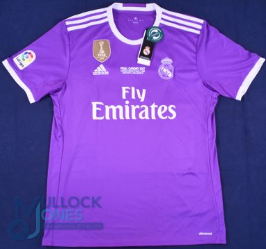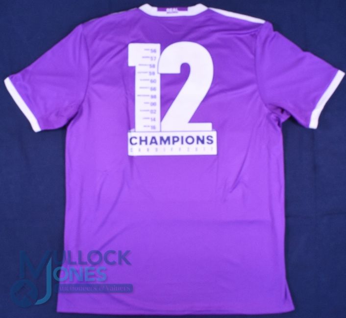 Real Madric FC away football shirt 2017 Champions League Final v Juventus, Cardiff #12 Champions, Adidas / Fly Emirates, Size L, Purple with tags (G)