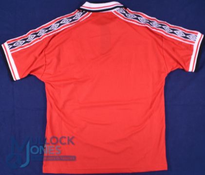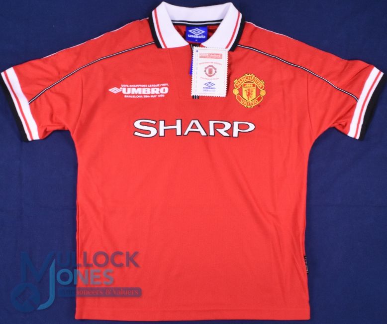 Manchester United FC home football shirt 1999 Champions League Final, size M, Umbro / Sharp, red, with tags (G)