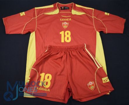 Montenegro FC Home Football Shirt and Shorts 2009, #18, Match Worn in a Friendly game, Shirt Size XL, Shorts Size M, Legea, red (G)