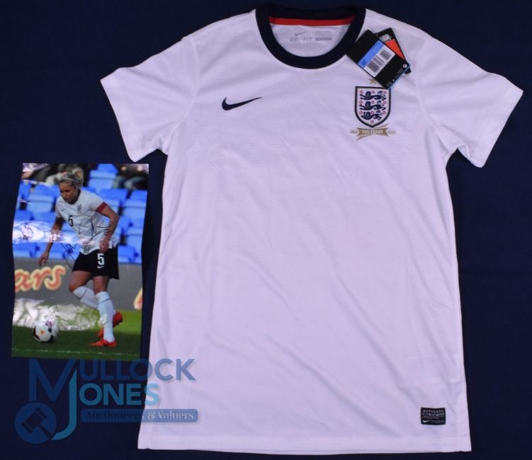England FC Home Football Shirt - 150 Years 1863-2013 Woman’s Size Medium, Nike, White, Good condition, some small marks, with a Steph Houghton signed photo