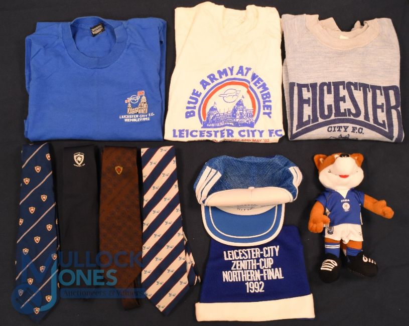 Leicester City Football Club Collectables - Two 1992 Wembley T-Shirt, an old Jumper, four Ties, two hats and a teddy bear