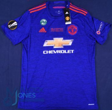 Manchester United FC away football shirt, 2017 Europa Cup Final Stockholm, #8 Mata, Size L, Adidas / Chevrolet, blue with tags (G)