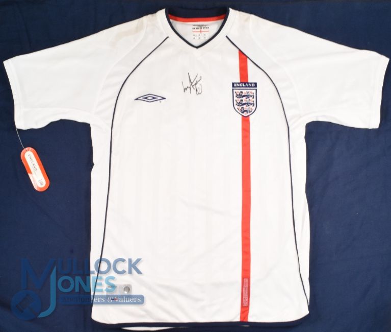 England FC Home Football Shirt 2001-2003 Size M, Umbro, with tags, good condition with some marks and an unknown signature on front