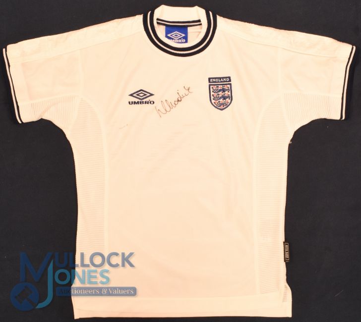 England FC home football shirt 1999-2000, size 152-158 cm, Umbro, white with an unknown signature on front (G)
